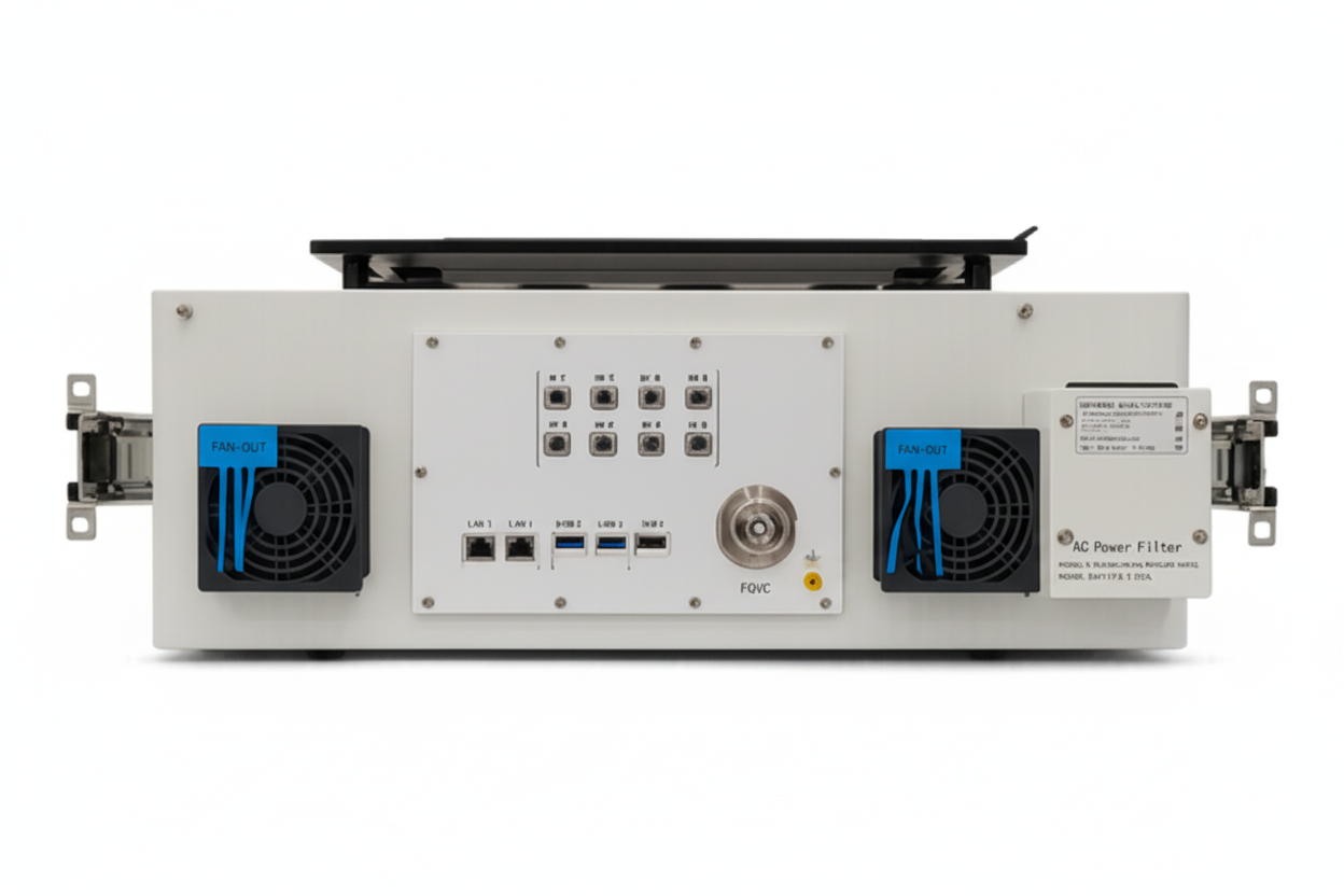 This 5 U rack-mount RF shielded box is designed to integrate into standard 19-inch test racks and offers strong electromagnetic isolation for wireless device testing. The addition of a telescope-rail allows the internal test cavity or equipment tray to slide in and out smoothly, making loading and unloading of devices under test much easier. Built for lab or production environments, it features custom I/O panels, efficient airflow management, and rugged construction to ensure reliable, repeatable test conditions.